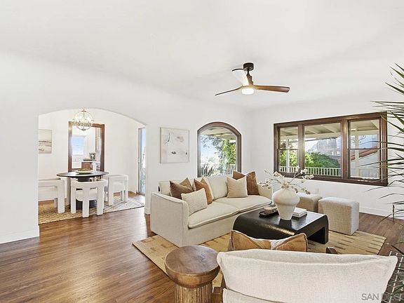 Spanish Charmer with Mountain Views in a Prestigious La Mesa Neighborhood! Perched atop El Capitan Hill and just minutes from La Mesa Village, this beautifully maintained Spanish-style home offers timeless character with modern updates. Enjoy sweeping mountain views and versatile bonus spaces perfect for today’s lifestyle. The main level features 3 bedrooms and 2 baths, showcasing refinished original hardwood floors, fresh interior and exterior paint, all-new stucco, and updated recessed lighting. The spacious living room includes a wood-burning fireplace, while the dining area opens to a large covered patio ideal for entertaining or relaxing with a view. Downstairs, you’ll find two versatile bonus rooms and a half bath—perfect for a home office, gym, playroom, or creative studio. Both bonus rooms feature new pine-colored luxury vinyl plank flooring. The backyard includes mature landscaping, a walkway leading to an additional storage area, and ample potential to customize or expand the outdoor living space. A detached garage and generous parking complete this exceptional property. Experience the best of La Mesa living in a highly sought-after neighborhood known for its charm, views, and proximity to shopping, dining, and recreation. Note: new French doors are being installed this week from the dining room to the patio