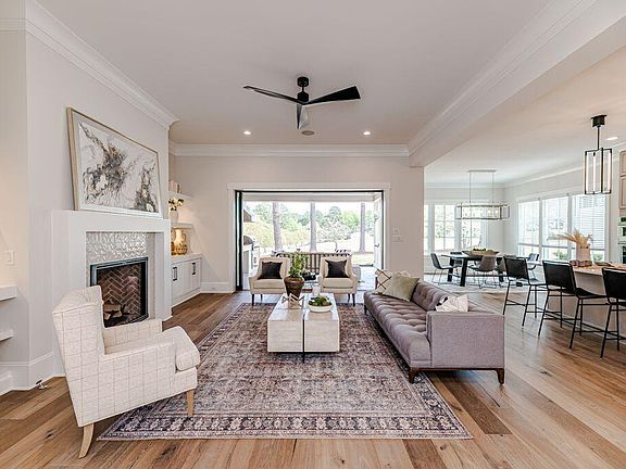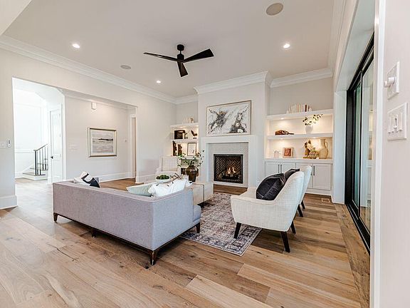 Outstanding home located on the North Ridge Country Club golf course. This Raleigh Custom Home build features luxury amenities and designer features throughout. A formal dining room, chef's kitchen with quartz counter tops, top-of-the-line stainless steel appliances with a gas cook top and a huge breakfast bar/island overlooks the family room with a fireplace and built-Ins on each side. All open to the outdoor living area that includes a fireplace, grilling station and bar. The main floor also features a stunning primary suite with spa bath, a large walk-in shower and standalone soaking tub, a guest suite, large laundry room and mud room. The 2nd floor features 3 bedrooms, 2 full bathrooms, a loft, game room with wet bar, and flex space. Sophisticated modern finishes are found throughout this North Raleigh home.