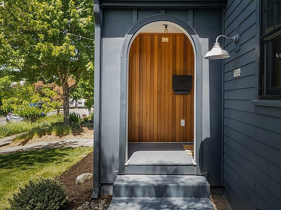 You can judge a book by the cover when it comes to this Kenton cutie. Custom doors, windows, arches, and new siding are just the start of this home's features! Inside, you'll find custom stained oak floors that flow through the main space and french doors that bring the outside in to this central and bright living room. The open and airy kitchen has been updated with new cabinets, butcher block countertops and open shelving. Each of the two bedrooms get loads of light and have beautiful fir floors. The freshly updated bathroom features a deep tub/shower combo and custom tile surround with built-in nooks and shelf. Downstairs, the finished basement features polished concrete floors and offers clean cozy media/bonus room or additional guest space. Around 2014 home got a new roof, 200amp electrical panel, sewer line, and high efficiency furnace. More recently home got central AC along with a heat pump hot water heater and insulation in the walls. The backyard is a dream retreat with a comfortable patio area to grill and relax, plenty of room for fire pit and lawn games, and large raised beds for summer veggies. There's a detached garage with power to store all your gear and a custom modern shed included (and ready to be turned into a sauna!). This is one of the most magical streets in Kenton, and the school field (located just across the street) has become the de facto dog park (just be sure to clean up up after your pet!). Open houses Saturday (11-1) and Sunday (1-3). [Home Energy Score = 9. HES Report at https://rpt.greenbuildingregistry.com/hes/OR10217835]