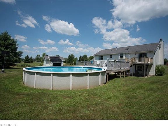 This beautiful, one owner, no pet home has been lovingly maintained. Serene country setting not far from conveniences of Medina or Wadsworth. Enjoy birdwatching on the deck, cooling off in the above ground pool (with solar panels for heat) or dining with friends on the paver patio. Wired for sound inside and out. Gorgeous cherry Kraftmaid cabinets throughout, beautiful current neutral colors. Skylights pour light into kitchen and living room with cathedral ceilings and wood burning fireplace. Custom tile adds beauty and ease of maintenance. Carrier 90% high efficiency furnace with humidifier and Culligan Reverse Osmosis water softener. This home also has a fully finished walk out basement . Great entertaining area with kitchen, private bedroom and bath that leads to the outside activity area.