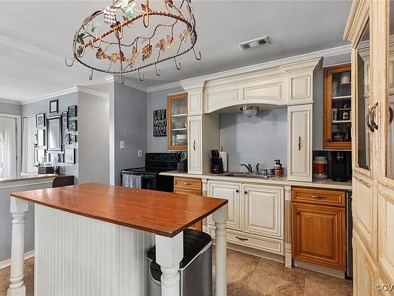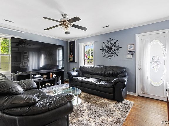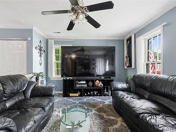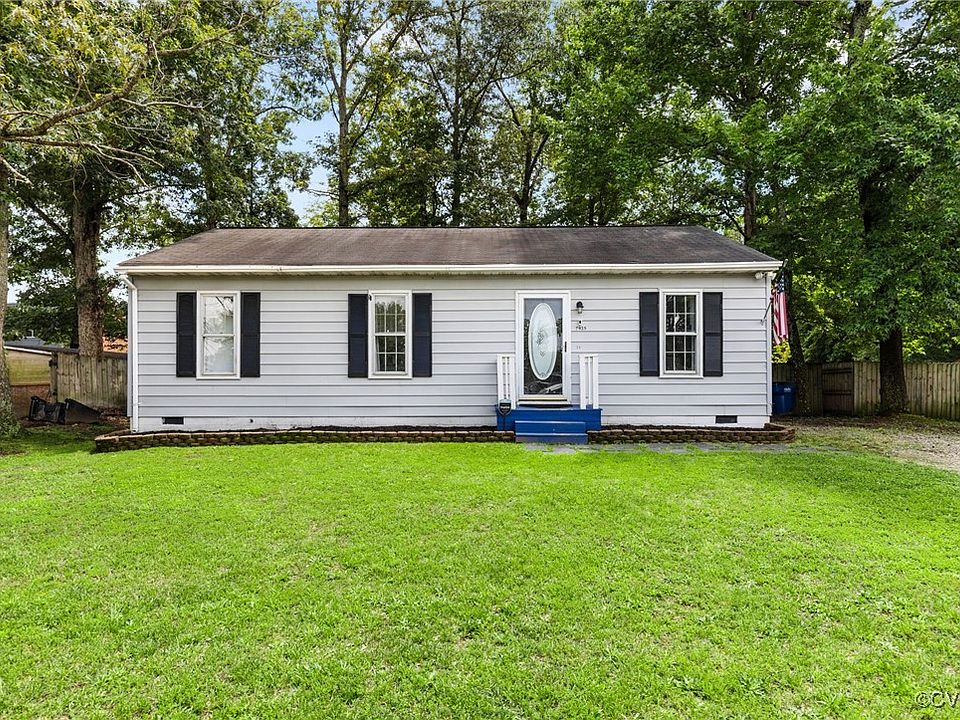 Welcome to 7925 Clovertree Court in North Chesterfield and zoned to James River Highschool— a charming 3-bedroom, 2-bath ranch-style home in Providence Court. With a fully fenced backyard, mature trees, and a multi-tiered deck complete with rope and door lighting, this home offers the perfect blend of privacy and outdoor space. Step onto the slate paver walkway and through the front door into a bright, open family room featuring wood floors and crown molding. The space flows seamlessly into the eat-in kitchen, where you'll find a center island, electric cooking, and sliding glass doors leading to the elevated back deck — perfect for morning coffee or evening BBQs. Just off the kitchen is a convenient laundry closet. The hallway leads to three comfortable bedrooms, including a primary bedroom with overhead fan, dual closets, and a private bathroom with a shower/tub combo and LVP flooring. A second bedroom showcases wood floors and a barn-style closet door, while the third offers carpet and a ceiling fan. The hallway bath features a walk-in shower, single vanity, and LVP flooring. Additional highlights include low maintenance vinyl siding, storm gutters, shutters, Verizon Fios compatibility, and privacy fence. If you're looking for a home with a functional layout, great outdoor space, and a convenient location—don't miss this opportunity!