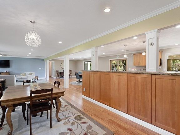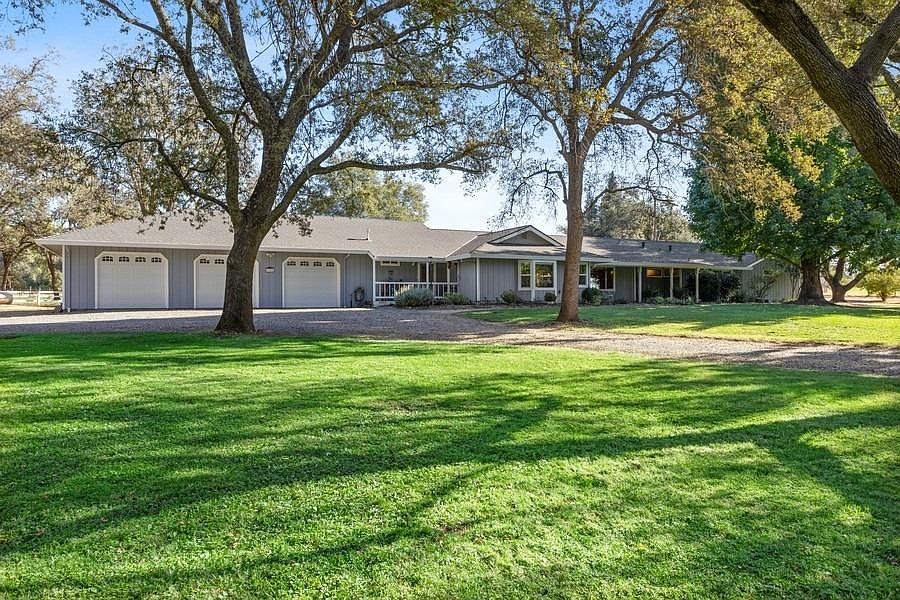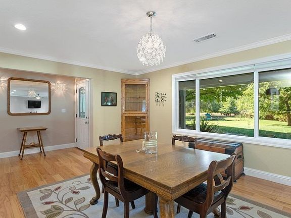 PRIME REAL ESTATE Beautiful, tranquil, level 4.4 usable acres in a wonderful country setting on a private road. Horse property, year round pond fed by gravity-fed irrigation water, abundant wildlife. Large primary suite with vaulted ceilings, jetted tub. Newer HVAC/roof/gutters/water heater/dishwasher. Oversized 4-car attached garage with shop area, full bath, laundry room, and garden/hobby room. A unique property with endless possibilities.