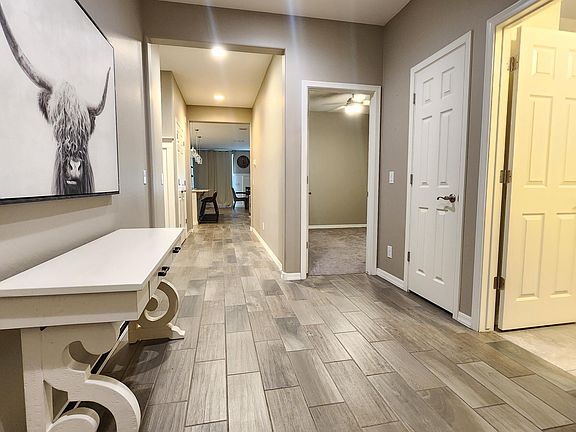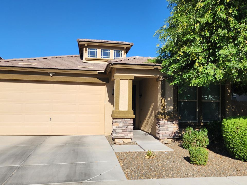 Stunning Single-Level Beazer Home in Gated Mountain Trails! This upgraded 3-bedroom + den, 2-bath home is truly one-of-a-kind. Featuring a 2021 4-ton HVAC system (not builder-grade), wood-plank tile flooring throughout, and a chef's kitchen with white 42'' cabinets, SS GAS appliances, deep sink, subway backsplash, granite island, and pendant lighting. Custom touches include craftsman-style window trim, shiplap and wainscoting accents, and floating shelves. Spacious laundry room offers dual access, added cabinetry, folding center, and custom backsplash. Backyard oasis includes all paver patio and walkway, turf, vibrant landscaping, and South mountain views—ideal for entertaining under café lights. Impeccably maintained and professionally painted. A rare find—this home stands out!