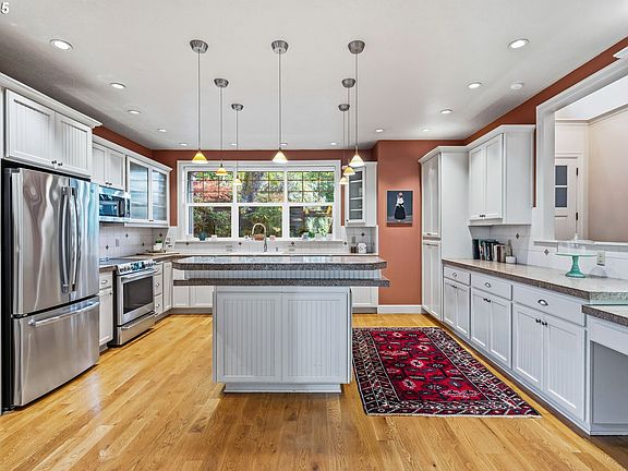 Just blocks to the heart of Multnomah Village! This contemporary craftsman offers equal parts modern convenience and classic charm on an enchanting fenced lot. Thoughtful touches throughout include intricate millwork, large windows, and lustrous hardwoods. The generous open kitchen welcomes cooking and conversation with an island, breakfast bar, built-in desk, modern appliances, and lots of light. The airy formal dining room leads to an impressive great room with soaring vaulted ceilings, gas fireplace, and slider out to the spacious deck. Deluxe primary suite on the main floor! The plush bedroom offers more vaulted ceilings, stylish design, a private door out to the deck, and dream en suite bathroom with double sinks, vanity, clawfoot tub, and walk-in closet. Endless possibilities for work and play upstairs with two additional bedrooms, open loft, bonus room, flex space, and lots of storage. Beautifully tiered backyard that flows from deck to patio to flat grassy area, all surrounded by established landscaping. Attached two-car garage. Just minutes to the best dining, shopping, and entertainment in Multnomah Village. Ask for features list! Updated HVAC, roof, water heater, appliances! [Home Energy Score = 5. HES Report at https://rpt.greenbuildingregistry.com/hes/OR10144915]