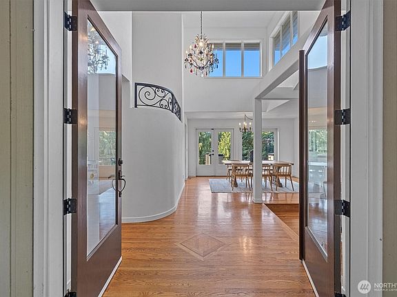 Nestled in the coveted China Creek neighborhood, this elegant residence offers privacy, quality & sweeping views. The dramatic grand foyer opens to a flowing layout that connects living, dining, and entertaining spaces. Vaulted ceilings, expansive hardwood floors & upgraded granite counters thru out. The primary suite features a spa-inspired 5-piece bath w/travertine heated floors, jetted tub. Stunning views of the Olympic Mountains, golf course & city skyline. Enjoy NW living on the 400+ sqft wraparound deck w/ sunset vistas. Over-sized 2 car garage, 2 fireplaces, theater room, home office & freshly painted interiors complete this sophisticated residence. Lower-level w/exterior access & bath offers great ADU or Mother-in-Law potential.