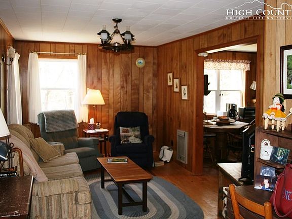 Come see this sweet cottage on 1.61 wooded acres, in a quiet neighborhood of seasonal and permanent homes. The owners cherished their vacation home for 20 years, and carefully maintained it. The living/ kitchen/ dining area is enlarged with an enclosed back porch. Two bedrooms & one bath will serve your family and/or vacation rentals very well. Wood floors and paneling provide that mountain home feeling, and most furnishings will convey. There is plenty of storage space in the unfinished walk-out basement, accessed by a spiral staircase. The coal-fired stove in the basement may provide an alternate heating source to the radiant electric heaters. Outside, stone walls line the driveway, and planting beds surround the house. The rocking-chair front porch is covered for those summer showers, and an open deck is perched in the backyard, to dine out or just enjoying the pastoral views. The little Village of Linville Falls is delightful, and this cabin is just a short hike from the waterfalls and awesome Linville Gorge. The Blue Ridge Parkway, restaurants, and the Linville Falls Winery are a short drive away. You'll live and play in the most beautiful wilderness areas of the High Country!