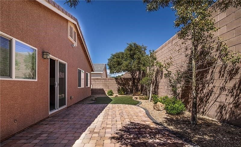 Beautiful single-story home with separate Casita, located in Buffalo Ranch, a gated community in southwest Las Vegas. This property includes a private casita with a separate entrance with a large bedroom, and a private bath. Welcoming courtyard to greet your guests to the main residence offering 3 bedrooms, 2 bathrooms, and a 2-car garage. Enjoy the spacious great room and open kitchen featuring granite countertops and a center island. Additional highlights include ceiling fans in all bedrooms, double sinks in the bathrooms, tile flooring in main living areas, and carpeted bedrooms. The backyard is designed for low maintenance. A wonderful place to call home!