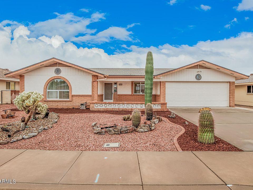 Become the proud owner of this lovely 2-bedroom home in the adult Community of Sunland Village! You're greeted by a 2-car garage, a picturesque desert landscape, and an inviting front patio. Discover a serene living/dining room with vaulted ceilings, a soothing palette, blinds, and soft carpeting for added comfort. The well-appointed kitchen comes with ample wood cabinetry, a pantry, and essential built-in appliances for a seamless cooking experience. The cozy main bedroom includes direct backyard access, a private bathroom, and a walk-in closet for an organized wardrobe. You'll also find a versatile bonus room ideal for an office or lounge. Unwind in the charming backyard, which offers a spacious covered patio perfect for dining al fresco or refreshing drinks. Make this gem yours!