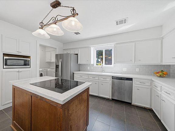 Handsome fireplaceDetached two-car garageUpdated lightingFront patioExpansive walk-in closetSun-drenched roomsEe vinyl windows