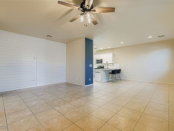 Turnkey 3 BR plus loft near shopping, schools, parks, freeway and Mt Charleston! Kitchen upgrades include marble counters and single basin granite sink. Ceiling fans in every room. Front courtyard has custom pavers, security door and outdoor living space. Garage has overhead storage racks. Water heater just replaced in 2024. HOA maintains front yard landscaping. Ring camera above garage not included. Common wall with neighbor is only in the garage.