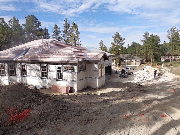 This stunning 5,824 sq ft Tuscan-style custom walk-out ranch provides the perfect harmony of indoor and outdoor living! Nestled on over 1/2 secluded acre with towering pines, you will enjoy bluff views and natural surroundings from every window. RKM Homes has over 27 years of experience and is proudly committed to craftsmanship, well appointed features and exceptional hands-on dedication to home buyer satisfaction. Located just minutes from I-25, The Denver Tech Center, Castle Rock and Colorado Springs, this executive home is in a rural setting yet so close to town! Enjoy nearby amenities such as Bear Dance Golf Course, restaurants and miles of hiking trails. The turret entry is an impressive first statement! Ten foot hand trowel walls, barrel ceilings, five foot windows, travertine, gorgeous slab granite and hand-honed wide plank wood floors clearly separate this home from others. An open-concept great room is complete with a dining and living area featuring a double-sided fireplace. The over-sized gourmet kitchen offers granite counter-tops and custom cabinetry which surrounds a grand island equipped with a wine chiller. A sunken library is located in a private area. The home office can double as a third bedroom. Unwind in the master retreat with great light, a huge walk-in closet and a spa-like five piece bathroom with large shower! The second bedroom is en-suite with a private bath. Wow! Never ending options abound. Enjoy periodic visits by wildlife as you relax on the expansive deck. Other notable features include 2 x 6 construction, ten foot walk-out basement ceiling, high efficiency furnace, central air conditioning, plumbed for central vacuum, R21 insulation in walls, sump pit and pump and an exterior gas line for BBQ grill. Prestigious Hidden Forest community is serviced by Perry Park Water and Sanitation.