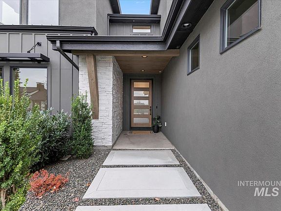 Thoughtfully designed newer-construction home by Shadow Mountain Homes in the sought-after Riverstone community. A highly functional layout with 4 bedrooms—one serving as a main-level office or guest suite adjacent to a full bathroom. An entertainer’s kitchen featuring premium Thermador appliances including built-in fridge/freezer, double ovens, and a gourmet cooktop, plus abundant cabinetry and gorgeous quartz countertops. Newly refinished cross-sawn white oak hardwoods add warmth throughout. The great room offers full wall sliders for seamless indoor/outdoor living and entertaining. Spacious primary suite with heated tile floors. Oversized 4 car garage with built-in storage. Low-maintenance backyard with professional turf, extensive landscaping for privacy, and a serene hot tub with gazebo. Riverstone sits along the Boise River with walking paths, stocked ponds, and an exceptional clubhouse and pool. Property includes an assumable VA loan at 2.75%—please inquire for details!