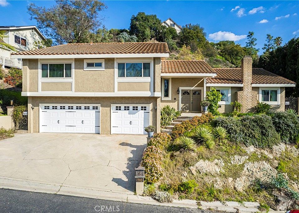 Must See! This stunning 2-story home is nestled in a cul-de-sac in the desirable city of San Dimas conveniently close to Bonelli Reginal Park hiking trails and Puddingstone Lake for water sports activates. As you step through the double door entry, you'll be greeted by a spacious living room complete with a cozy fireplace. Adjacent to the living room, you'll find a formal dining room, ideal for hosting elegant dinner parties. The remodeled kitchen boasts gorgeous granite counters, plenty of cabinets, and stainless-steel appliances, making meal prep and cooking a breeze. The kitchen opens to a spacious family room featuring a convenient wet bar and a sliding glass door that leads out to the backyard. The main floor bedroom also has sliding door access to the outside, providing easy access to the beautiful outdoors. There are also 2 remodeled bathrooms on the main floor, one of which is a ¾ bathroom and the other a powder room. As you make your way upstairs, you'll find an extra-large primary bedroom with a private balcony, perfect for enjoying your morning coffee or soaking up the sun. There are 3 additional bedrooms upstairs, all featuring mirrored closet doors, and a full remodeled hall bathroom. This property comes complete with a 3-car attached garage, providing direct access to the home. The covered patio in the backyard is perfect for relaxing. The open floor plan, recessed lighting, cathedral ceilings, and dual-pane windows are just a few of the additional features that make this property a true gem. Don't miss out on this incredible opportunity!