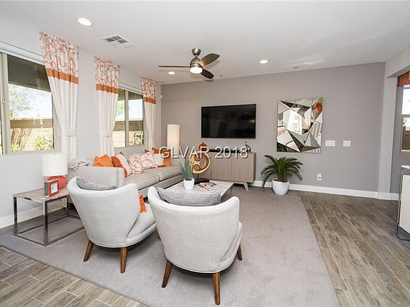 WOW! FULLY FURNISHED AND READY FOR MOVE IN! Corner lot & no rear neighbors. Three bedrooms plus a downstairs den. Kitchen enhanced to the tilt. Stainless steel appliances. Well appointed upgrades. This is all located in a gorgeous guard gated community with water park and fitness center. Enjoy golf on the Rhodes Ranch golf course in between your weekly activities. MUST SEE WOW!