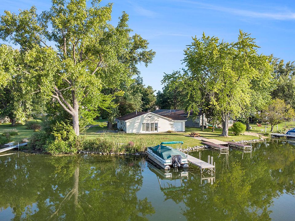 Discover your perfect lake retreat at this delightful 3-bedroom, 1-bathroom cottage situated on the serene shores of Craig Lake, part of the picturesque North Chain of Lakes. Boasting 116 feet of pristine lake frontage, this property offers stunning water views and direct access with 3 docks for all your aquatic adventures. Step inside to find a fresh, inviting interior with new tile floors throughout, combining style with easy maintenance. The open floor plan maximizes natural light through its lake-side double slider doors and provides a warm, welcoming atmosphere. Enjoy cozy evenings in the spacious living area or unwind around the patio or firepit overlooking the lake. With three comfortable bedrooms, this home is ideal for both summer escapes and year-round living. Whether you seek a seasonal getaway or a year-round sanctuary, this cottage offers the perfect blend of tranquility and convenience. Don't miss this opportunity to own a slice of lakeside paradise.