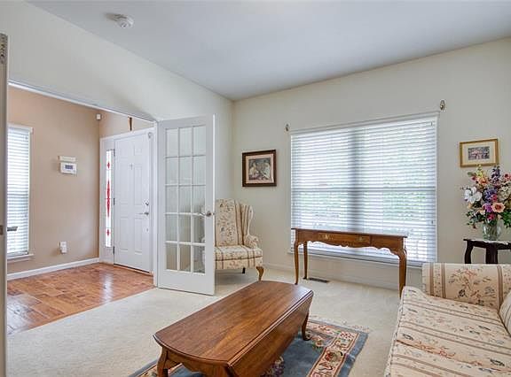 Must view this Estate Living in the Villas of Queensbrooke. This home is loaded with extras, to many to list! Features of this home include formal entry way, sitting room with French Doors, which could be converted into an additional bedroom, pristine hardwood flooring throughout, large Master Bedroom with Bay window and a walk-in closet. Master Bath has an oversized shower, double bowl vanity and linen closet. Additional features include Main Floor Laundry, full hallway bath, open floor plan through the Great Room, Dining Room and Kitchen. Crown Molding throughout the foyer, Great Rm and Dining Rm is extremely nice feature. The Kitchen has custom cabinetry, plenty of counter-top space, one of two pantries and walks-out onto the composite private deck. The Lower Level features a rec/room, family room with fireplace, full bath, large bedroom and a play room, could be an additional bedroom. The home has a chair lift to Lower Level. Garage has a chair lift and 2nd Pantry. MUST SEE!