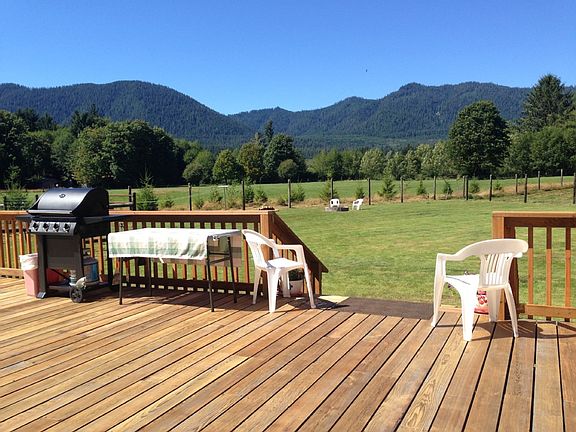 Great investment property with profitable VRBO Nightly Rental income. This home is turn-key and is being sold fully furnished. Visit: www.vrbo.com/484415. Enjoy this ranch-style cedar rambler in Lake Quinault in the heart of the Quinault Rain Forest - Home to the Roosevelt Elk. The home sits on 5.2 acres on the South Shore Road of Lake Quinault (2.5 miles up the Quinault Valley from the Lake Quinault Lodge). The mountain views are spectacular and the home is perfect for those that love the outdoors as the Quinault River, known for its world class fishery, flows directly behind the property. Our property boasts several resident elk herds, abundant wildlife and is a steelhead fisherman's dream. With four bedrooms and two bathrooms, the home is ready for a family or the next get-away retreat for those wanting out of the city lights to a place where the stars shine and the elk bugle. The home is recently remodeled (absolutely gorgeous) with a wood stove insert, hardwood floors and an incredible kitchen with double oven, gas range, stainless steel appliances and floor-to-ceiling custom cabinetry. The kitchen was designed for home-canning with deep sinks, long counters and a 6-top gas range. Two family rooms, large laundry room and mud room, and large cedar deck with built in propane and Stainless BBQ make this Lake Quinault's #1 get away retreat. Enjoy the large back yard perfect for whiffle ball and complete with a fire pit for those evenings of star watching, strumming the guitar, telling stories, roasting marshmallows and eating smores! Please reference VRBO.com 484415