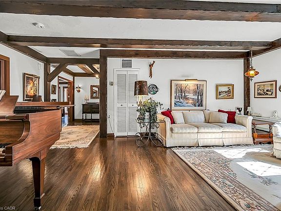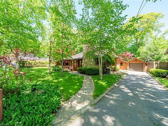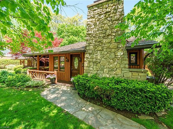 Same family over 50 years, lovingly cared for & maintained. This sprawling bungalow sits on a 100x 237-foot ravine lot. Inside you are invited into a generous living room with wood burning fireplace & ample space for a piano, the formal dining room has a wood burning fireplace & built-in cabinets, worthy of formal dinner parties or extended family gatherings. The eat-in kitchen flows through to the cozy, rustic family room with skylights, French doors & built-in bookshelves. The sun-filled walkway to the bedroom wing boasts several windows overlooking the beautiful rear yard & ravine. Primary bedroom with wood-burning fireplace, built-in wardrobes, 4-piece ensuite & private balcony. Two more bedrooms & 4-piece bathroom with main floor laundry complete this area. Before heading downstairs, there is an additional 4-piece bathroom & breezeway access to the garage. In the lower level of the home, you will find a recroom with yet anther woodburning fireplace, two rooms currently used as guest bedrooms, a 3-piece washroom & storage room. Outside-enjoy the tranquility of the ravine & all the privacy it offers. Enjoy the shade & solitude of the wraparound front porch on one of Aldershot’s most well-known streets. Stroll to the lake at the end of the street, the Burlington Golf & Country Club, LaSalle Park & Marina. This home is truly one of a kind.