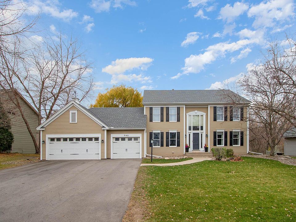 Located on a quiet street with privacy in the backyard, this home is sure to please. 4 bedrooms on the 2nd floor with bathrooms that are updated to please. Owner's suite with vaulted ceiling and spa like on-suite will make you want to pamper yourself without leaving home. Open staircase to the 2-story grand entry with large transom window above to allow natural light to spill into the front of your house, which also includes formal dining room and living room. Large kitchen with center island looks into the family room and leads you to the window filled sunroom facing your backyard. You won't believe the size of the deck on this house. If you're looking for a home to entertain in, here you go. The lower level provides a wet bar, gas burning fireplace, and a walkout to your paver patio. 3 car garage provides you with plenty of space and has additional storage above. New carpet on 1st and second floor. Welcome home.