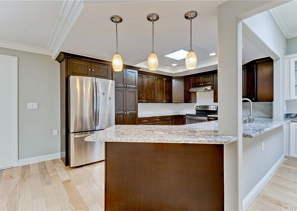 Luxurious completely top to bottom updated this desirable Madrid 2/2 home is one story, with no one above or below. 55+ resort style community Located in a private garden location surrounded by nature landscape, the large grass area is perfect for your pets. This home also features a large gated patio for entertaining and relaxing. Enjoying BBQ dinner and privacy. Very Bright and sunshine all day. 6 skylights and 2 tubes. Nature and bright color of engineering maple woods guides you for easy cleaning and maintaining. Crown molding all over and no carpets entire house. The gorgeous kitchen with energy savings stainless appliances makes you feel luxury. Pantry & trash can cabinets installed. Enclosed atrium for perfect dining area with built-in stylish china cabinet. Two tone cabinets for your charming taste. All of windows are triple pane window. It makes you peaceful that protects you from unwanted noisy. The spacious bath has been completely remodeled with tile floor, Granite counter and Luxury cabinets. Extra storage cabinets are located on the patio and carport. Large (50G) water tank installed at outside Storage for your extra space inside. Spacious pantry and extra cabinets. All lights are LED bulbs (ave 15 yrs life) for lower electric costs. Owner pays HOA Dues include property taxes, trash, water, landscaping, building maintenance and insurance. MUST SEE!!