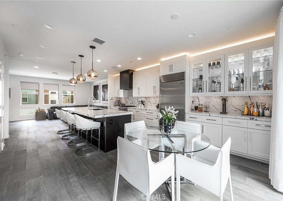 Welcome home to the intimate Boatyard community! Just minutes away from the coast, a mere 1.6 miles from beautiful Newport Beach, offering high end design and finishes that are unparalleled. This 3-story home has been completely remodeled with newer wood like Walker Zanger tile flooring throughout. The 1st floor office space is commercially zoned for small business use with separate HVAC system and remodeled bath including a showstopping, custom tiled marble wall and quartz countertop. 2nd floor level features A 2022 REMODELED KITCHEN with premium Subzero/Wolf & Cove appliances, custom integrated hood and new high-quality cabinetry and kitchen plumbing, custom pendants, smart HUE accent lighting, oversized island, walk-in pantry, custom mirror and glass cabinets, and extra thick quartz edge counter tops. The powder room nearby has been fully remodeled as well with tiled walls and custom quartz console sink. The 3rd story offers two large Primary Bedrooms with dual sink, en suite baths, recently remodeled with designer tile and finishes plus oversized walk-in closets. Lastly, the rooftop deck offers sunbathing, BBQ cooking station and entertaining with a peek-a-boo ocean view and OC’s city lights. This deck also includes artificial turf and tiled flooring. Garage includes 220v electric car charging, epoxy coated floor and a gas tankless water heater. The ultimate SoCal lifestyle can be achieved in this home is close to local dining and shopping on 17th Street and the highly desired Fashion Island, Balboa and Lido Peninsula. Also offers convenient access to the 55/405 freeways, and Pacific Coast Highway, as well as Hoag Hospital and John Wayne Airport. This home is a must see!!!