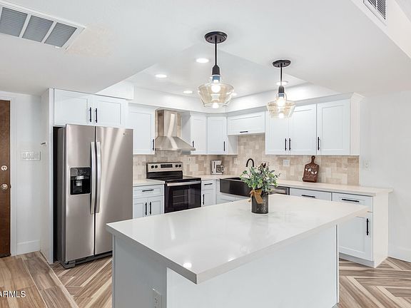 Beautiful ''lock & leave'' ground-level unit, in a highly sought after area, near downtown Scottsdale. Upon entry you'll notice the bright open layout. The updated kitchen has a large island, lots of white cabinetry, new recessed & pendant lighting, travertine backsplash & stainless-steel appliances. This home has large ceiling fans, plantation shutters, and a soft palette that promotes an inviting vibe. Discover the large primary bedroom offering a trendy barn door to the ensuite with a large walk-in shower and spacious walk-in closet. Wide sliding glass doors, provide a seamless connection to the back patio, creating an easy flow for indoor-outdoor living. Great views and lots of amenities in this gated community.