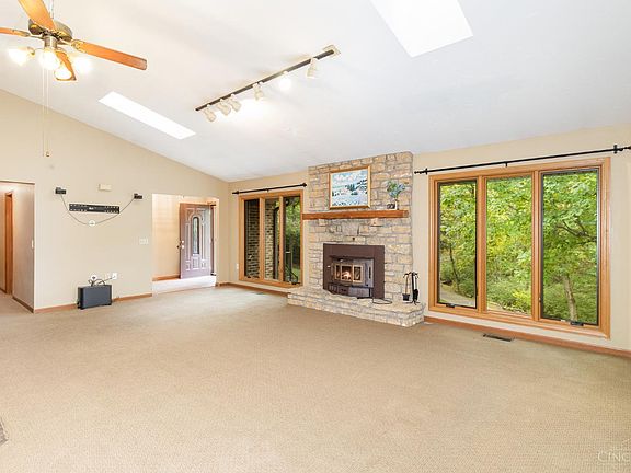 Tucked away on over 3 wooded acres in North Bend, this inviting ranch offers privacy, space, and comfort. The open-concept layout features a vaulted great room filled with natural light, a stone fireplace, and a flexible home office or study. The finished lower level has brand-new carpet and walks out to the attached two-car garage, providing convenient access and additional living space. Surrounded by trees and wildlife, the sellers have loved watching deer wander through the yard from the deck and great room windows. With three bedrooms, three baths, and wooded views in every direction, this home offers peaceful seclusion just minutes from schools, parks, and local amenities.