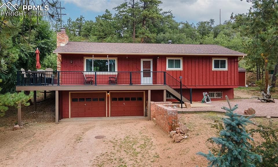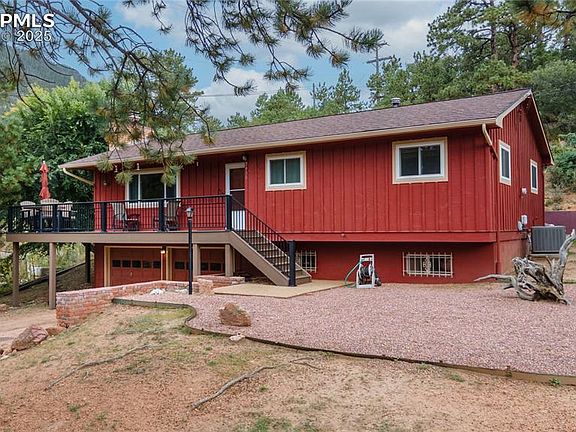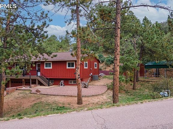 Nestled among pine trees with serene views from every window, this thoughtfully updated home offers comfort and functionality in a peaceful, quiet mountain setting. The main level family room showcases a moss rock fireplace with incredible heat output, while all recently replaced windows flood rooms with natural light.The beautifully appointed kitchen features hickory cabinets, solid quartz countertops, an under-mount sink, attractive tile backsplash, and quality stainless appliances including a gas range, a Bosch dishwasher, and LG refrigerator. The large dining area includes ceramic tile, and a walk-in pantry. The primary bedroom has a bath en suite which has been updated with quartz countertops, tile shower and newer toilet. Two additional main level bedrooms provide flexibility for an office on the main level and share a bath. The basement has a large secondary living space. There is an additional room that could easily be converted to a 4th bedroom with the addition of a door or could be used as an office. The updated basement bathroom includes a vanity with a quartz top, newer toilet and a tile shower. Laundry is located in the basement and washer/dryer are included. Outdoor living shines with a wraparound composite deck (2-year-old with transferable warranty) featuring updated railings, plus a backyard deck with hot tub. The property includes a 21'7"x21'6" garage, 14'x21' carport, RV parking (30'x10'), and 8'x12' shed. Additional features include air conditioning , 3/4" white oak floors under upstairs carpet, high-impact roof shingles with transferable warranty.