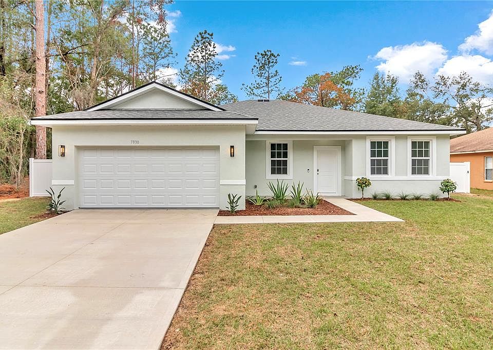 This brand-new, affordable 4-bedroom, 3-bathroom new construction home in Marion Oaks Unit 10 has been completed and is ready for a new owner. County water is available. Newly installed privacy fence with lock. No flood insurance necessary. The kitchen is equipped with granite countertops, stainless steel appliances, an island with a double-bowl stainless steel sink, a Moen faucet, a garbage disposal, and 36-inch cabinets. Enjoy upgraded ceramic tile floors throughout and granite countertops in the bathrooms. Experience elevated living in this exquisite new construction home. This model offers 4 bedrooms and 3 bathrooms within 1,827 square feet of thoughtfully designed space, harmonizing style, comfort, and functionality. This home is ideal for growing families or entertaining guests. Enjoy the freedom of a spacious lot with no homeowner association or CDD fees. Don’t miss your chance to claim this dream home—schedule a showing today and discover the perfect backdrop for your family or retirement. Home builder warranty available. Seller concessions available.