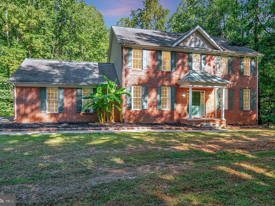 This brick-front Colonial in Spotsylvania has hardwood floors on the main level and new carpet upstairs. The kitchen features granite counters, stainless steel appliances, and ceramic tile flooring. The open layout includes family, living, and dining rooms. Upstairs, the primary suite offers dual closets and a vaulted ceiling; its ensuite bath has a double vanity, soaking tub, and separate shower. Three additional bedrooms, a hall bath, and laundry complete the upper floor. The finished basement adds a large rec room, full bath, and storage. A rear deck overlooks a spacious backyard on a wooded one-acre lot. Prime location only 15 min to Lake Anna boating/fishing, Spotsylvania Mall/Central Park, and I-95.