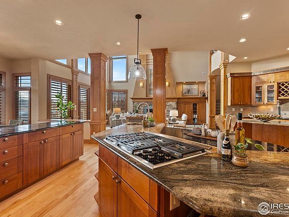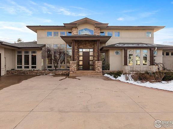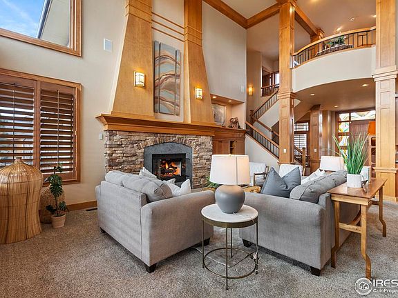 This stunning home is the epitome of CO lifestyle- large lakefront lot, mtn views, timeless wood finishes throughout this impressive custom-build! Spacious main floor primary suite w/ 1 of 4 fireplaces, luxury bath, & a beautiful closet. Top-of-the line chef's kitchen has double islands, plus a bar. The sunporch leads out to the SW facing covered deck complete w/ outdoor fireplace. In the walkout bsmt you'll find a 2nd bar & wine cellar. Located in one of NoCo's most sought after neighborhoods!