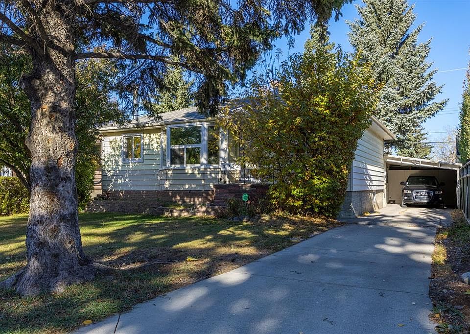 This charming bungalow is nestled on a quiet street in the heart of the historically iconic community of Bowness. Beautiful mature trees will greet you at the curb and the extended concrete drive will usher you up to the front door. You will be greeted at the foyer with glistening original hardwood flooring. The comfortable sized living room is illuminated with natural light flowing through the large front bay window. A lovely built in adjacent the bay window is an ideal location for the TV or plants. Spacious dining area with a beautiful papered feature wall, touch activated sconces, and stunning original glass paned pantry door. This gem boasts a balance of updates throughout while maintaining qualities of its original charm. The beautifully renovated kitchen is an expressive space that is sure to inspire many lovingly prepared meals. The aesthetically appealing two toned soft close drawers and cabinets offer functional space saving enhancements while the updated oversized gas stove and range hood provide an engaging focal point to the kitchen. Updated 4 pc main bath. A comfortable sized Primary room and second bedroom complete your tour of the main floor. The rear door offers a separate entry to the main and lower level. A large storage closet and open space await you at the bottom of the stairs. This is an ideal space to set up the gym equipment or keep those valuable bicycles indoors. The large bright utility room is home to the washer and dryer, hobby area and additional storage. The substantially sized recreation room is home to the dry bar and striking stone faced wood burning fireplace. A third bedroom and updated 3 piece bath make this an exceptional area for entertaining. The extended side driveway offers plenty of additional parking. The carport will keep the snow off the vehicle during the winter months & also includes a front storage area. The massive back yard is an entertainers dream. The beautiful stone patio welcomes your guests to gather around the fire pit while you grill up the steaks on your gas BBQ. The rear fence has a swing door and could accommodate RV parking. Or, build your dream garage at the rear of the home and park the RV on the side driveway. Alternatively one could remove the carport and have dual access to a garage. Additional upgrades to this home include newer LED light fixtures throughout, paint, windows on the main and lower bedroom, newer hot water tank & furnace, roof is approximately 10 years old, and sewer line to the home has been replaced. Close proximity to schools, shopping & amenities, Bowness Park, COP, Shouldice Athletic Park, the Children's hospital & the University. The of abundance of amenities within the community and surrounding area is exceptional. A short commute to downtown and quick access to highway 1 for those who enjoy adventuring outside the city. Contact your favourite realtor today to call this home your own.