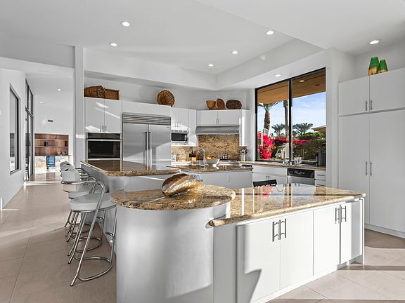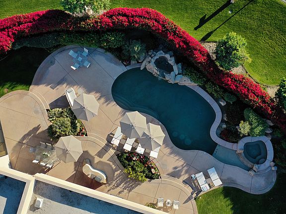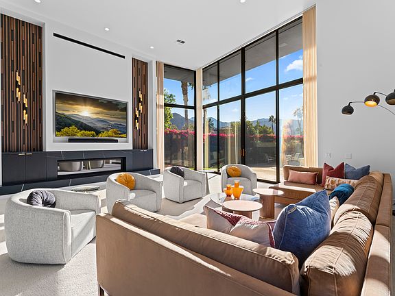 Welcome to STONEGATE located within the prestigious, privately gated community of The Estancias in the heart of La Quinta. Only 47 estate sized homes grace this exclusive neighborhood, with STONEGATE sitting on a prime, one acre, south-facing parcel. The mountain views are breathtaking from virtually every window! Sunsets are glorious, sunrises spectacular. The home sits in such a way as to afford COMPLETE privacy once inside the enclave, enjoy your family and friends with complete peace and utter privacy. The house is a true estate, boasting 3 large, en-suite bedrooms in the main house plus a large, 3 room Casita (which includes 2 en-suite bedrooms and a living room). Inside the main house, STONEGATE'S Living Room is an entertainers dream large floor to ceiling windows showcase the mountain views while the updated nod to mid-century modern furniture is comfortable and perfect for viewing the 100" TV screen. It's the perfect room for watching the "big game", streaming a movie, or simply hanging out with friends and family. The Kitchen and Family Room areas are perfect for enjoying that morning cup of coffee while watching the sunrise light up the mountains. A separate breakfast nook sits in such a way as to feel as though one is sitting outside. The pool deck is expansive with plenty of seating for a large or small groups several chaise lounges and multiple seating areas are designed to accommodate all. The newly renovated pool has a sun-shelf (or "kiddie-pool") for staying cool on those hot days. The north side of STONEGATE is comprised of a HUGE grassy yard, absolutely perfect for all types of games (croquet, volleyball, badminton, etc.). Play baseball with the kids/grandkids, or play a game of flag football with buddies, it's THAT big! The Estancias neighborhood was once a grapefruit orchard which is why there are over 20 grapefruit trees on the STONEGATE property, PLUS lemon, lime, and multiple orange trees (there is even a mango tree!). It's a citrus lover's paradise and our guests are free to pick at will. The house is in the perfect location for enjoying Old Town La Quinta, The Empire Polo Grounds (Coachella/Stagecoach/Equestrian events), Indian Wells Tennis Center (BNP Paribas), multiple golf courses (AMEX Golf Tournament in PGA West), fabulous restaurants, and more. El Paseo is an easy 15 minute drive, PSP is 35 minutes away, and JCRA Private airport is only 10 minutes. Let STONEGATE be your private oasis, you'll love it!