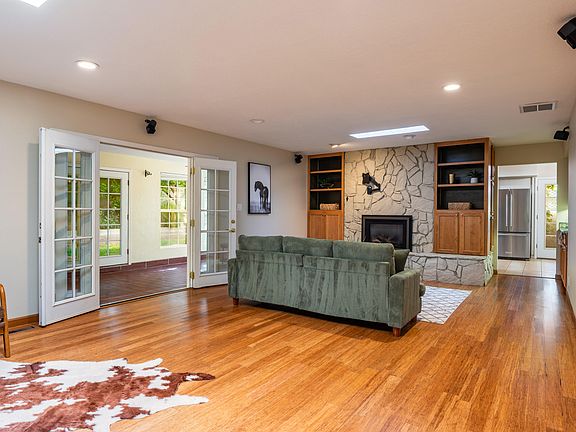 Welcome to this beautiful 4-bed, 3-bath home with 2,950 sq ft of living space, located in a highly desirable and established neighborhood in NE Albuquerque. Mature trees, lush grass, and timeless curb appeal make this property truly inviting. Inside, you'll find spacious living areas with real wood flooring and abundant natural light. The open layout flows seamlessly from the living and dining spaces into a cozy family room featuring a stone fireplace with built-in shelving. French doors lead to a sunroom and out to the backyard, creating a perfect blend of indoor and outdoor living. The kitchen is bright & functional, with easy access to multiple living areas, making it ideal for entertaining. Additional highlights include refrigerated air, an attached two-car garage, & side yard access.