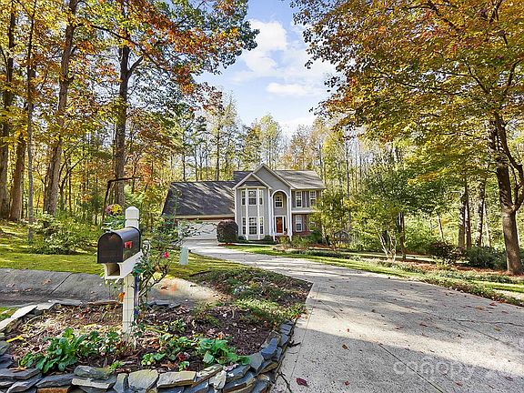 Looking for a private 1.95 wooded acre lot with creek and CHICKEN COOP? This is it! Main level features include a formal dining room, upgraded kitchen w. large island, granite counters, tile backsplash, under cabinet lighting, stainless appliances, gas cooktop and oven, large built-in pantry, crown molding throughout, generous size great room perfect for family gatherings and a conveniently located power room. On the upper level you will find the primary suite featuring a private bath with heated floors, dual vanity, soaking tub and separate shower, 2 generous size secondary bedrooms with a hall bath, the laundry and a HUGE bonus room. Exterior features include an oversized garage, new deck (2024), beautiful views of the woods and creek, a chicken coop and storage shed. Great location minutes to downtown Mint Hill where you can enjoy walking to outdoor dining spots & farmers market.
