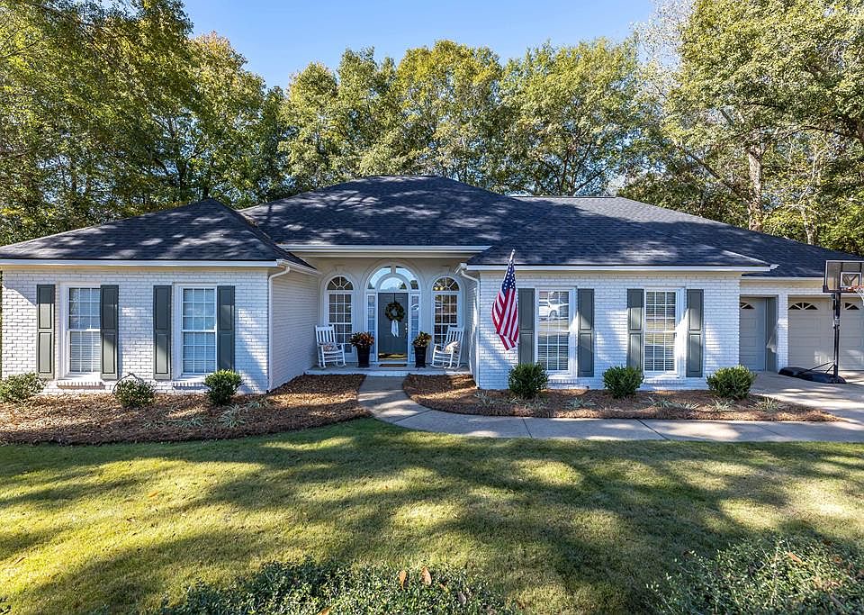Maple Ridge Dream Home! Entry foyer leads to formal dining room and great room. Formal dining has French doors, chandelier, and door to the kitchen. Great room with vaulted ceiling, gas logs fireplace and beautiful view of the backyard. Kitchen with stainless appliances, gas range, built-in oven and microwave, breakfast bar with pendant lighting and pantry. Breakfast area and laundry room off of kitchen. Master bedroom with double tray ceiling. Master bath with walk in closet, jetted tub, dual vanities, and glass shower. Split bedroom floorplan with three additional bedrooms on the front side of the home. Two huge storage closets in the hall. Covered back patio with brick pavers lead to a deck with built in benches. Fenced backyard. LVP in great room, dining room, master bedroom and hall. Tile floor in kitchen and baths. Carpet in the guest bedrooms. Community tennis, pool, lake, and fantastic golf course.