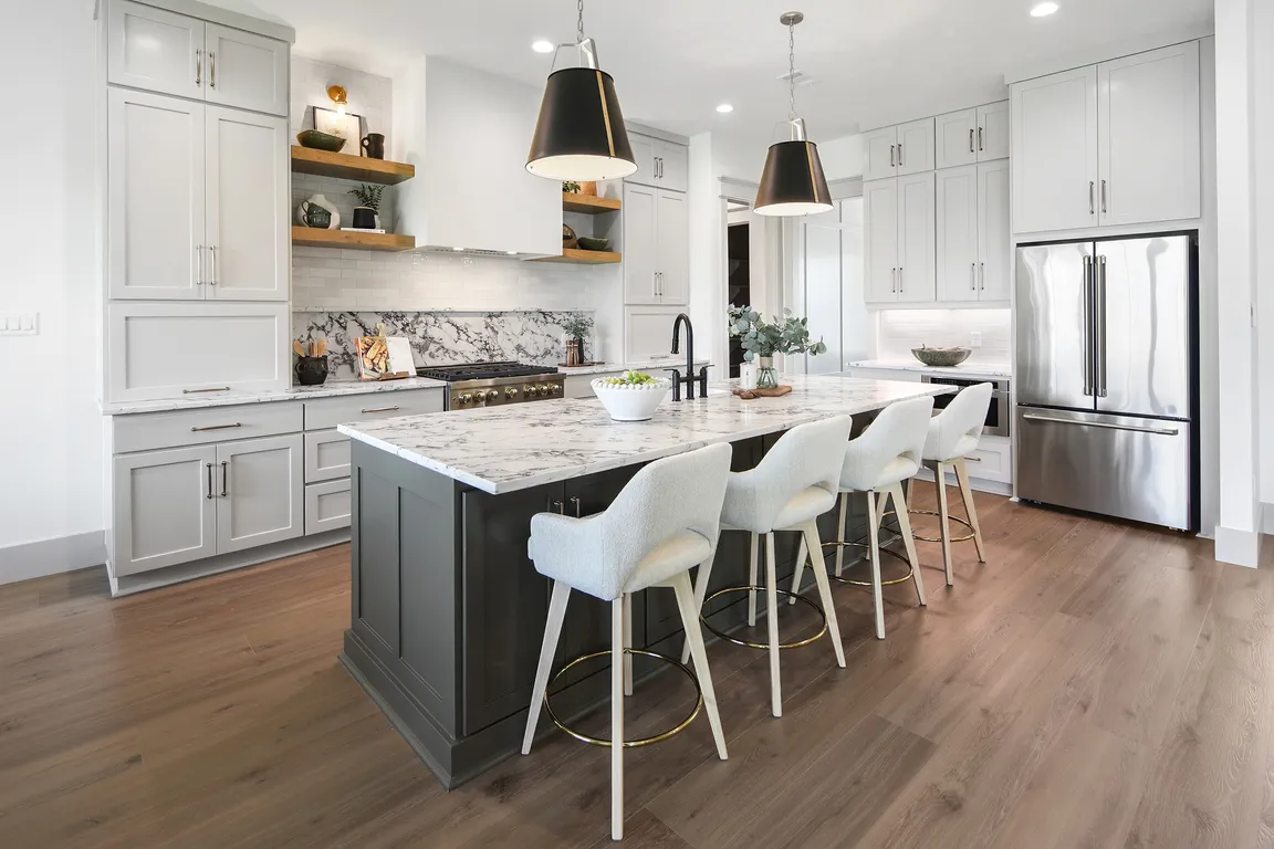 - Ceiling Fan(s), Marble Counters, Breakfast Area, Kitchen Island, Programmable Thermostat