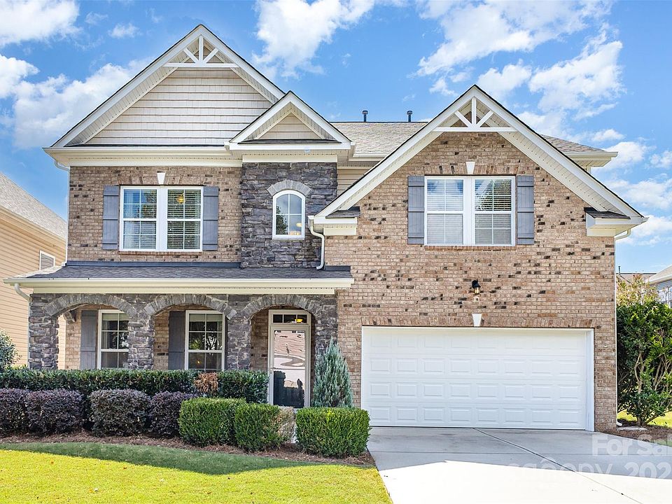 Exquisite Ryland Homes Drake floor plan with stone & brick facade, covered porch, & mature landscaping