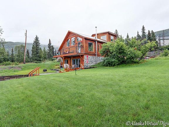 !!!Real charmer in Bear Valley/city and mountain views and occasional northern lights viewing from new deck & railing/oversized 2-car garage/shop/generous RV parking/oak hardwood floor on main floor/3rd-level master bedroom w/plumbing in walk-in closet wall for that 3rd bath if you'd like/young wood stove (pollution free & energy efficient)/high ceilings/3 BRS + hobby room or office/entire