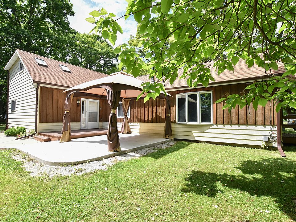 Welcome home to this well-maintained Contemporary offering more than 2000 square feet and access to Long Lake! The natural fireplace with stone surround is the focal point of the large and inviting living room. The eat-in kitchen includes newer vinyl flooring, ample cabinet space, newer appliances and separate dining area. Two sizeable main-floor bedrooms - one with double closets and one with a walk-in closet! Private master bedroom upstairs is huge and offers many possibilities! Refreshed and updated bathroom features newer vinyl flooring and a new glass shower door. Over a 1/2 acre tree-lined lot and four-car heated garage is unbelievable! Walk down the road to enjoy Long Lake access for year-round lake fun! Recent updates include tear-off roof/gutters/downspouts/aluminum fascia and soffit ('13), furnace/central air ('14), garage heater ('14), water heater, water softener/iron curtain ('15), some newer windows and storm door.