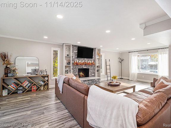 Must see this 4 bedroom home offering over 2,800 sq. ft. of beautifully finished living space with an open, light-filled floor plan and endless updates inside and out! The stunning new kitchen features quartz countertops, a large island with a farm sink, double convection oven, built-in range vented to the exterior, crown molding, custom tile backsplash and elegant custom lighting. Kitchen flows seamlessly into the spacious great room with a cozy custome stone fireplace and built-in shelving. Enjoy gatherings or quiet evenings on the multi-tiered deck overlooking the large yard with patio for dining + a firepit area. New carpet upstairs leads you to hhe luxurious primary suite rivals homes twice the price, featuring bay windows, crown molding, an electric fireplace and an incredible custom Closet by Closets by Design. A fully renovated bath with freestanding tub, dual vanities, tiled shower, custom mirrors & lights plus built-in cabinetry with vanity area. Upstairs also includes two additional bedrooms, a second updated full bath and convenient second-floor laundry. The newly finished 2025 walkout basement boasts all-new flooring, motion-lit stairs, a large family room with wainscoting, a 4th bedroom, new half bath and a walkout to a paver patio. The heated garage includes an epoxy floor and built-ins, plus an extra-wide driveway and pad on the side of the home for a motorhome or boat. Additional highlights: newer windows (2022), new well pump (2023), roof and added insulation to attic and to include spray-foam insulation in the basement (2024). No HOA! Excellent location near lakes, parks and endless shopping and dining options. All in a peaceful neighborhood with easy access to everywhere. This is the one you’ve been waiting for!