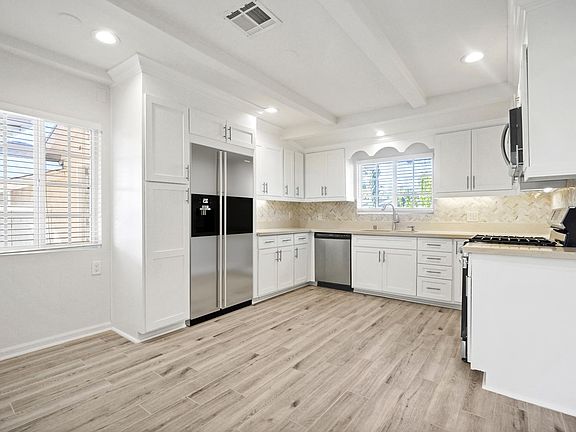 Wow! Beautifully remolded 1917 SQ FT ranch style home with circular drive way behind private gate in the heart of Reseda! This magnificent home features 3 bedrooms, two bathrooms and two more bonus rooms with their own closet that can be used as additional bedrooms or office (total of 5 bedrooms). The open concept living space features formal living and dining room with exposed beam celling and a gas fire place. The remodeled kitchen includes breakfast area, white shaker cabinets, quartz countertop, backsplash, stainless steel oven, dishwasher, microwave and a refrigerator. Other upgrades includes new tile and waterproof Laminate Flooring throughout the house and new interior Painting. There is a two car attached garage with laundry hook ups. The charming backyard with a large patio cover and fruit trees is an ideal place for entertaining friends and family members. Supper close to shopping areas, restaurant and transportation and more! Photos' are virtually staged no furnisher included. Tenant to pay utilities. Must have very good credit score.