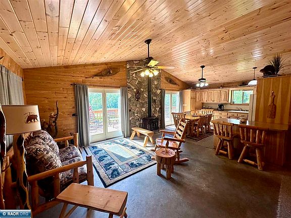 25 acres with approx 900 feet on the Vermilion River! Seeking that remote getaway? This property is located in the Buyck area with outdoor opportunities galore. The Vermilion River flows from Lake Vermilion to Crane Lake and is a cherished fishery with Walleye, Pike, Bass, Crappie and Bluegill. Crane Lake and Voyageurs National Park are just a short drive as well. The ATV club built a large trail system with hundreds of miles of trails right from the driveway. In winter, the Vermilion River is a snowmobile trail in itself. The cabin is THE definition of cozy. 2 acres of field give an open feel. Beautifully constructed with half log siding on the exterior and tongue and groove on the interior. Kitchen features custom hickory cabinets. A large deck overlooks the river. Electric boiler w/heated slab heats the cabin w/a gas fireplace as well. All log furniture comes with the sale. Drilled well and septic are in! Hunt, fish, atv, hike, sled, name it!