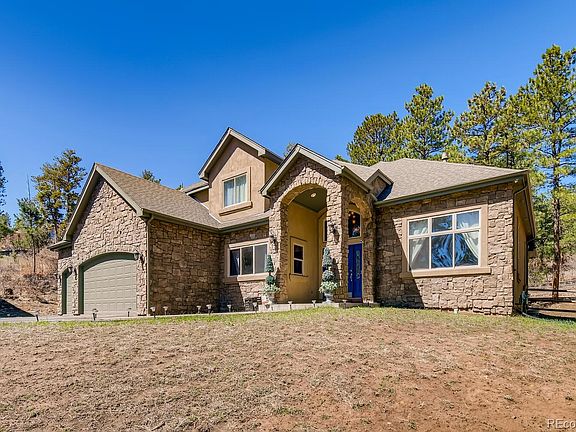 Welcome home to quiet seclusion, towering pines and the perfect home to call your own. This spacious mountain home has it all! The gourmet kitchen features a center island, granite countertops, stainless steel appliances and a breakfast nook. The kitchen opens into the cozy family room with a gorgeous stone fireplace perfect for those cozy winter nights. There is a main floor private master suite with a fireplace and sitting area. The office is perfect for days you work from home! The huge basement is perfect for entertaining and has a small kitchenette with room for a table and gaming area. This space is perfect for growing children, guests or family who need more space. Beautiful fenced backyard with covered patio to enjoy summer evenings. Don't forget this home boasts a three car attached garage and four car detached garage. Above the detached garage is another finished 1000 or so square feet with kitchen and bath!! Use this incredible space for extended family, home office space or whatever is needed for your family! Must see this amazing home tucked away in beautiful Perry Park.
