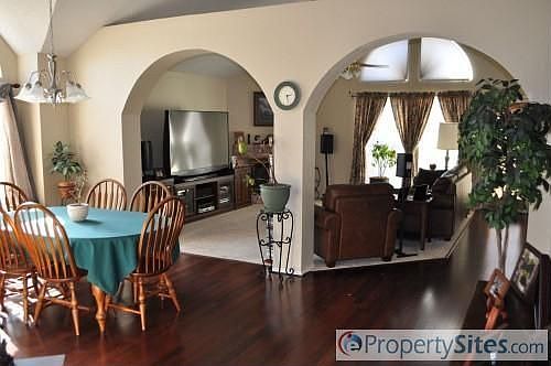 Kitchen has granite countertops, custom cabinets, stainless steel appliances, island, built-in desk, and eat-in area. Neutral colors. The large open floor plan is accented with double arches going into the family room. Master bedroom is down. Lots of updates. Utility off garage and has half bath. Patio in back has retractable awning. 2011 roof replaced. Other replacements: dishwasher, microwave, range, wood like floors, fence (2007). Brokered And Advertised By: WILLIAM DAVIS REALTY FRISCO Listing Agent: Janna Burton