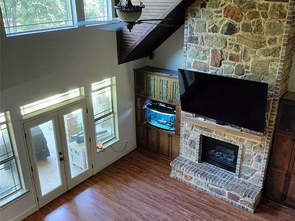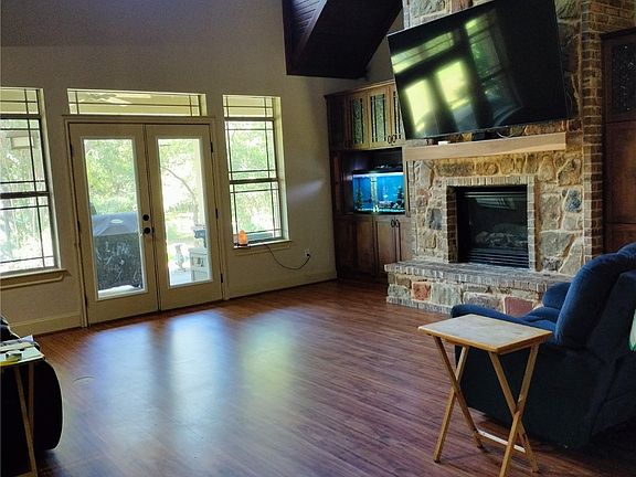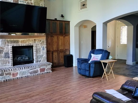custom built home by original owners. could actually be 5 bedroom home. Downstairs bedroom is used as an office. Has built in desk and shelves plus walk in closet. Upstairs game room used as bedroom so they have 3 bedrooms upstairs. Slate tile flooring as you enter into the living room great room which has lots of built in cabinets and storage and lovely stone Fireplace. Lots of natural light and beautiful high wood ceiling. Formal dining room plus breakfast area that looks out onto the back yard and pool area. In rear the seller has a 24 X 30 workshop with electricity, walk in door and garage door to drive your mower in and out.