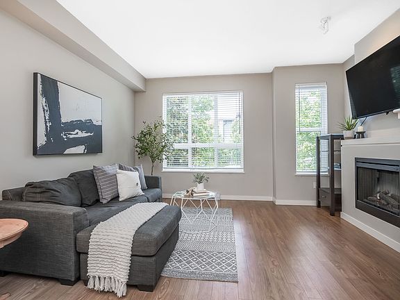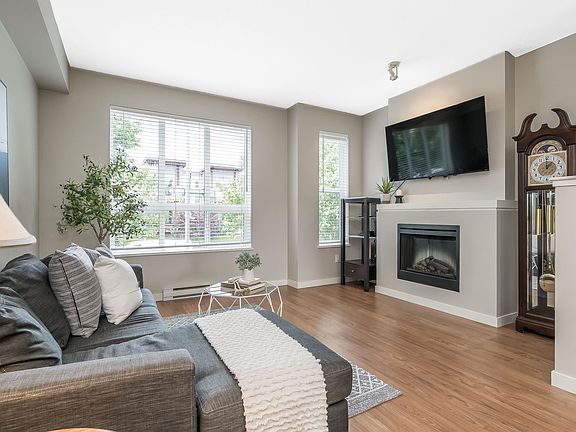 Welcome to Polygon's sought after Red Maple Park 2 LARGE bedrooms, 2 bath t/h with a tandem garage and parking for 3. PRIME LOCATION across from the pool, hot tub and the clubhouse. Step inside to find 9' ceilings on the main creating an open and airy atmosphere and freshly+professionally painted throughout. The large ensuite bathroom features a double vanity and roomy shower. Cozy up by the fireplace and open living concept main floor. Families/couples will love the resort-style living inc. outdoor pool, hot tub, fitness studio, ball hockey arena, 2 guest suites + huge playground. An easy 1/2 block walk to Bullpit Elementary through the adjoining development. Steps to all the shopping and dining Willoughby Town Centre offers and less than 5 minutes to HWY1