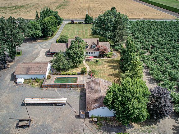 Beautiful custom farmhouse, 3 bedrooms, 3 bathrooms, and over 4200 square feet to relax. Tons of room for your home business/small business. Two good sized bedrooms on the main floor, and master on upper floor. Huge kitchen with quartz counters, breakfast bar, and space for table, and a formal dining space as well. Sunroom attached to kitchen for a tranquil place to rest. Two oversized family rooms with wood burning fireplaces, one includes a large built-in desk great for an office space. Giant master bedroom with shower and jacuzzi tub. ALL THREE BEDROOMS HAVE WALK-IN CLOSETS!! Huge and beautiful patio with pool. Sits on over 50 acres of orchards. Peace and privacy! Price includes 3 bedroom garage. Shop available if more storage space is needed, please inquire about this option. Covered RV parking & trailer parking included. High speed fiber optic cabling throughout the home, great for a home business. Rental begin date is April 10, 2025. Six month lease required and month to month after that. Please email with questions. Home is situated on a well which means there is no water bill. Renter pays for electrical and owner pays for garbage. Six month lease preferred and month-to-month after that. No smoking inside. Owners take care of outdoor maintenance. Pool maintenance is negotiable.