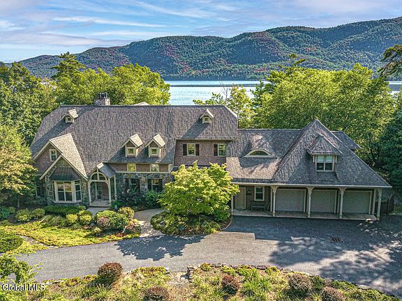 Enjoy 323 feet of pristine Lake George shoreline in Silver Bay with a boathouse featuring a rooftop deck and docking for three boats. This quality-crafted 5,000+ SF Craftsman home sits on 1.1 acres, offering superb lake and mountain views from nearly every room.
