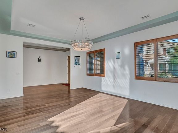 Located in the prestigious guard-gated Cascades community within the Mountains Edge master plan! This spacious home boasts over 4,000 sq. ft. of living space with 10-foot ceilings and wood flooring downstairs. The gourmet kitchen features custom cabinetry, granite countertops, and a double oven, opening to the bright and airy living area.The layout includes a downstairs guest bedroom with full bath, plus two large bedrooms, an open loft, and a massive primary suite upstairs offering mountain views, spa-style bath, and walk-in closet.Step outside to your private backyard oasis with outdoor living area, built-in BBQ grill, fireplace, and tranquil waterfall. Conveniently located near Mountains Edge Regional Park, walking trails, and Exploration Peak Park—perfect for an active lifestyle!